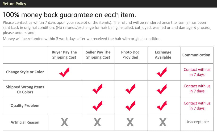 or not combing out daily will lead to tangle and shedding. Please follow hair care instruction and use good shampoo &
