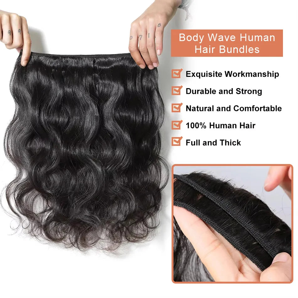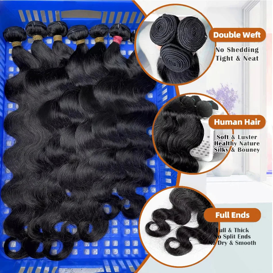 30 32 40 Inch Body Wave 3 4 Bundles Brazilian Remy 100% Unprocessed Raw Virgin Human Hair Wavy Double Bundles Weave Extensions