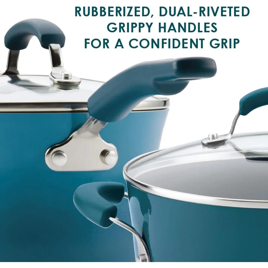 Brights Nonstick Cookware Pots and Pans Set 10 Piece Marine Blue