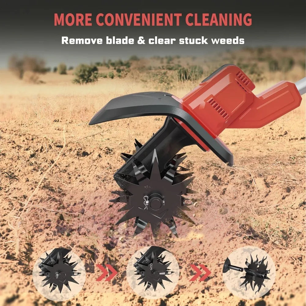 - 【Powerful & Efficient】The Cultivator Is Equipped with 4 Durable Steel Tines and Operates at Speeds up to 360rpm, Which Can Cultivate Areas up to 9'' Wide and Up To 6.6'' Deep In Seconds. Whether You're Preparing Soil for Planting or Aerating Your Lawn, This Garden Tiller Gets The Job Done Quickly and Easily.