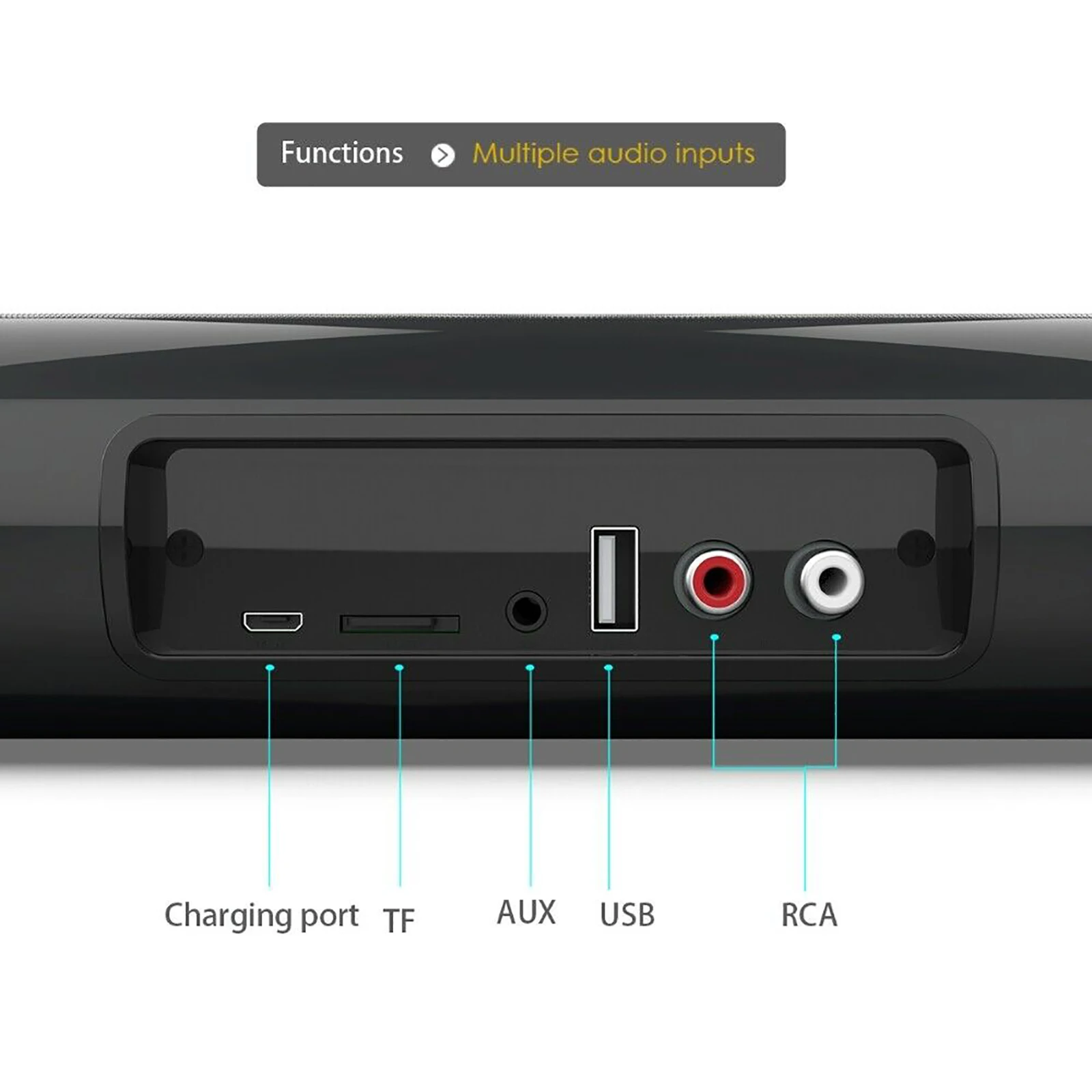 3. Excellent Sound Quality: Adopted the newest configurations, this Soundbar has 4*10W built-in speakers and Bluetooth 5.0 chipset, which means it can produce greater bass and excellent sound performance. Four speakers for high performance multi-dimensional sound and an unparalleled cinematic deep bass surround sound, let you enjoy high-quality music. Watching TV at home is like watching a movie at a movie theater. It gives you a theater level sound experience.