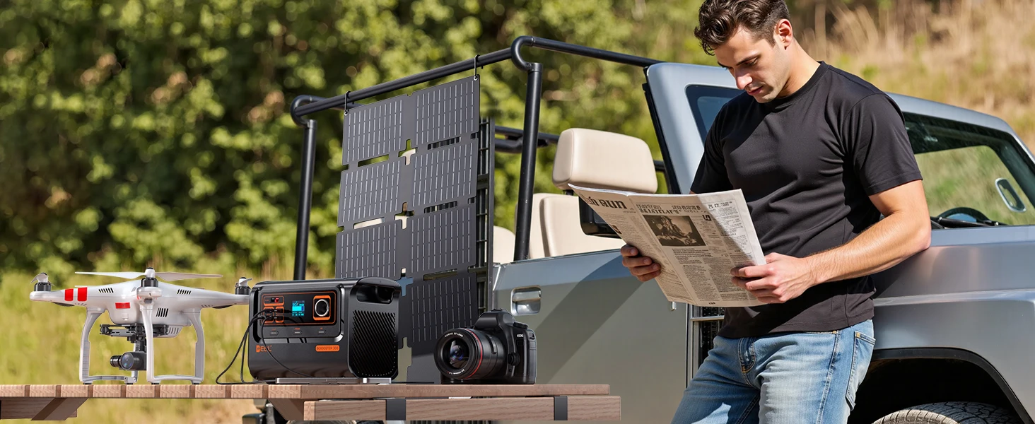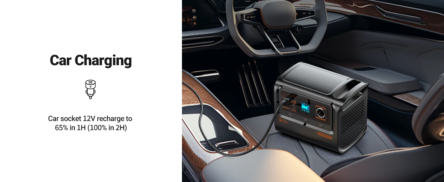 POWER 6 DEVICE SIMULTANEOUSLY - Equipped with 1*3-Prong AC 1*USB-C PD 20W output, 1*USB-C PD 60W output, 2*USB-A QC3.0 18W outputs, 1*Car Charging port, EBL solar generator can power Six devices at the same time (as long as they draw less than 330W combined). Each switch can control each output module.
