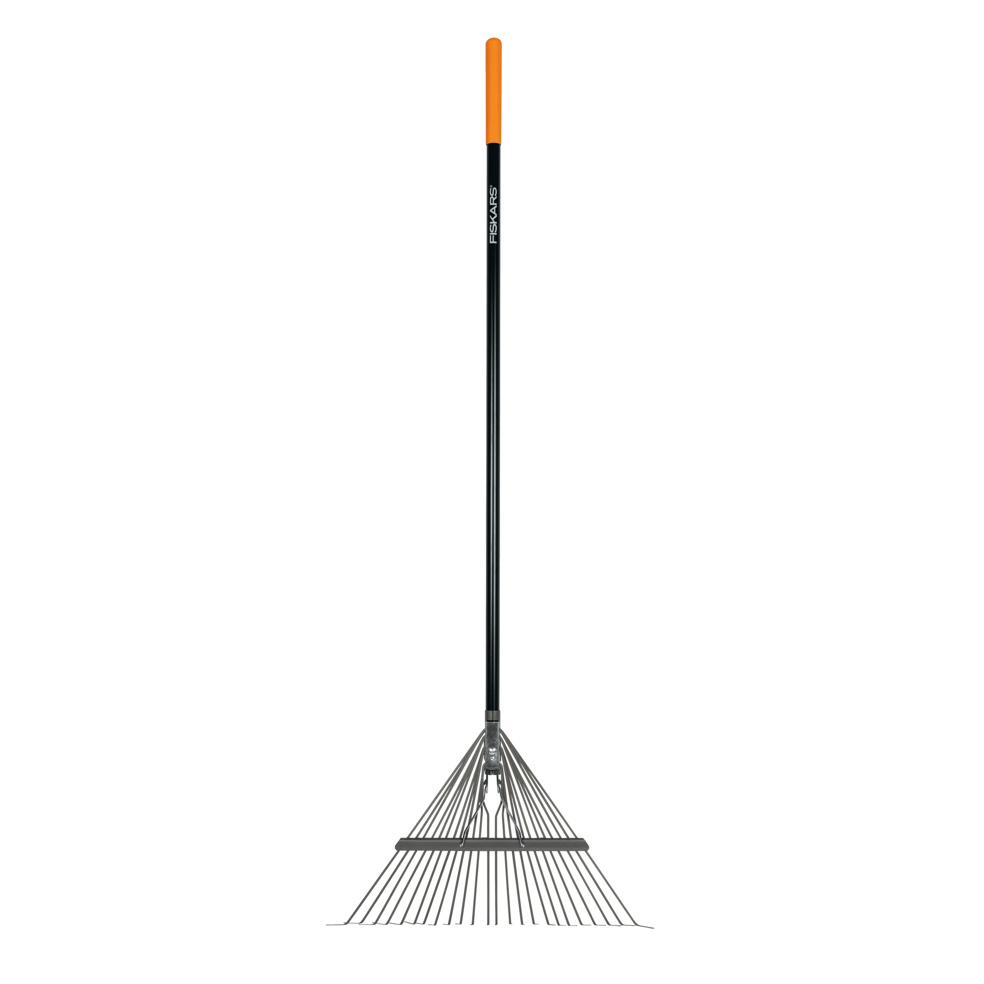 - A reinforced, bolted-on head keeps the metal tines securely attached, so you’ll not have to stop to reassemble during a busy cleanup, even on uneven terrain.