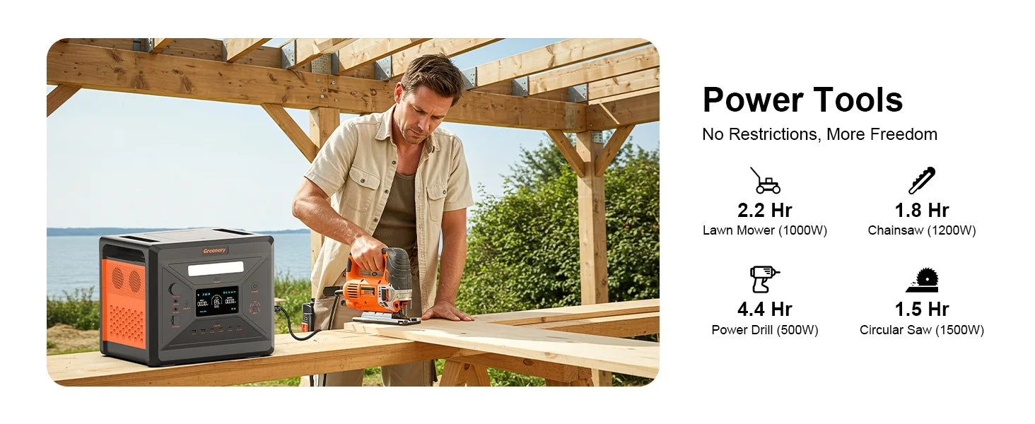 Experience reliable off-grid power with the Greenery G2500 MPPT portable solar generator, designed for RV life, camping, and emergency outages.