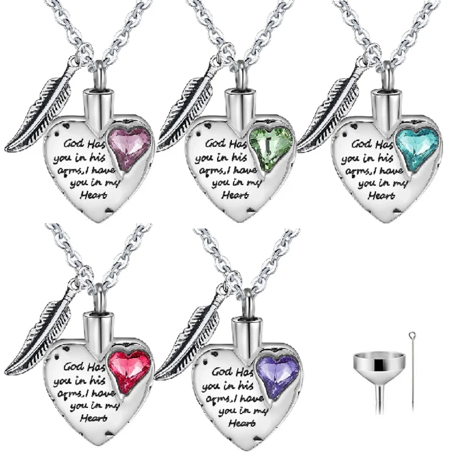 Heart Cremation Jewelry Ashes Urn Necklace with 12Color Birthstones Ash Necklace Memorial Cremation Necklaces Women