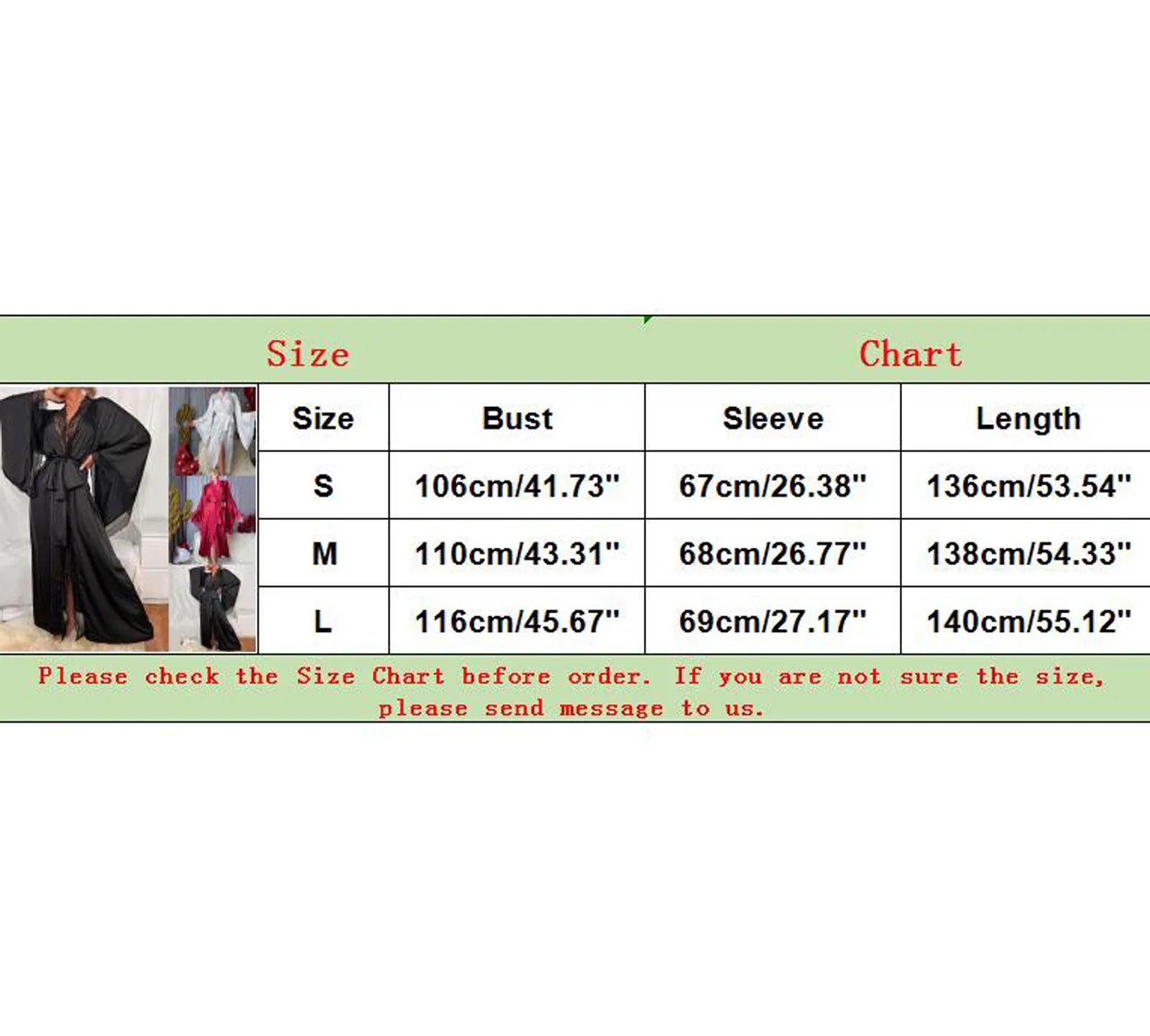 One size fits most Chest 42", Length-48", weight below 180lbs, the length depends on height, ankle length or tea length.