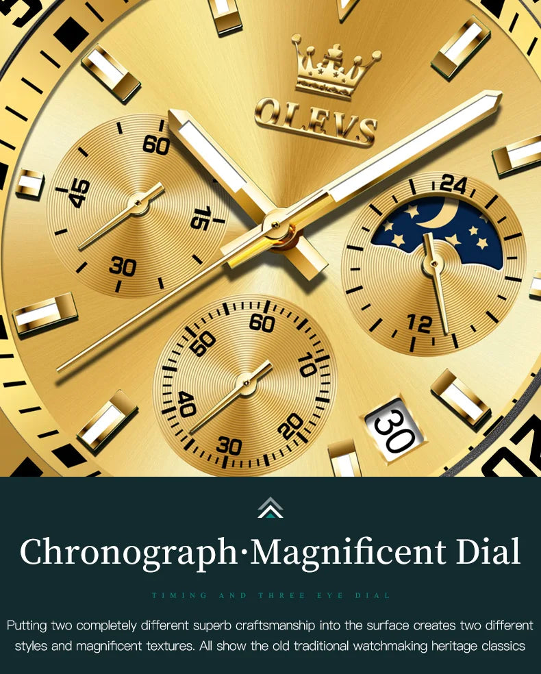 Feature: Luminous,Chronograph,Complete Calendar,Moon Phase,Water-Resistance