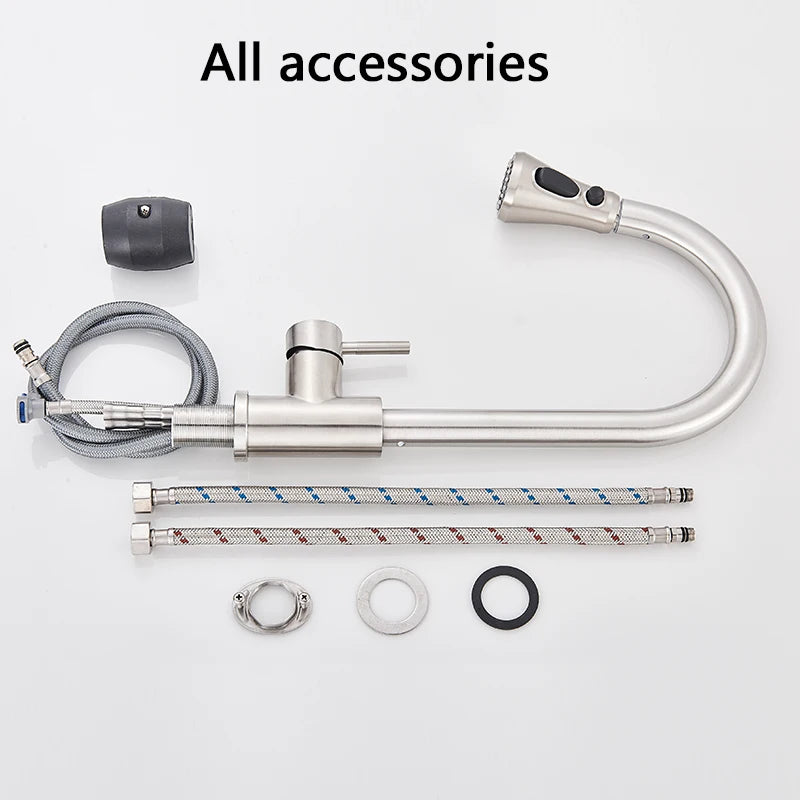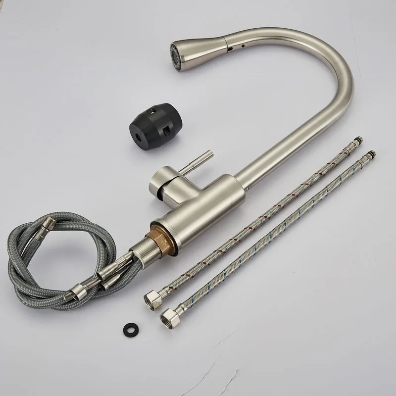 Rozin Pull Out Gourmet Kitchen Faucet Tap SUS304 Black Single Handle Kitchen Sink Mixer Tap 2 in 1 Spout Hot Cold Water Crane