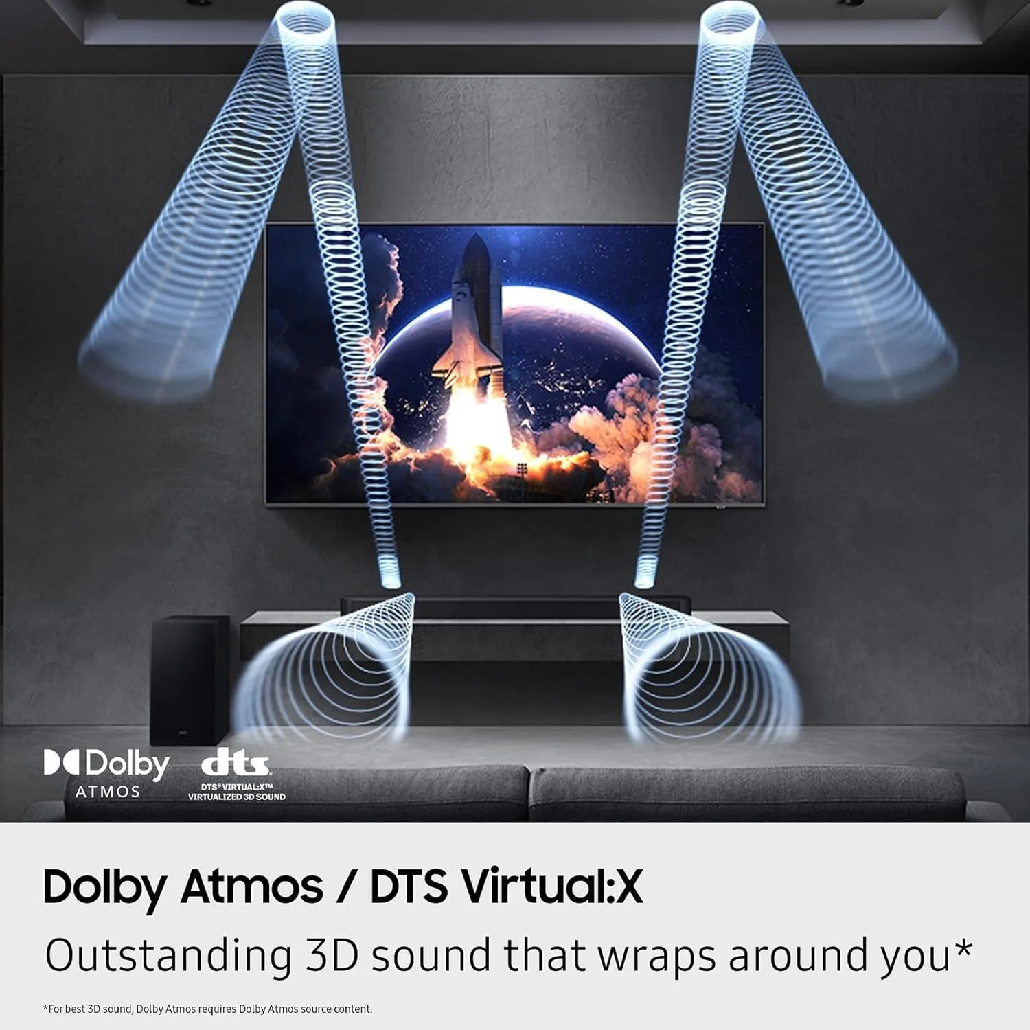 Immersive Surround Sound: 3.1.2-channel design with subwoofer and Dolby Atmos delivers a cinematic surround experience.