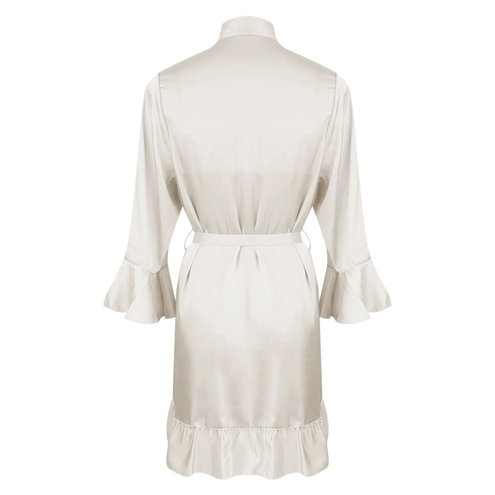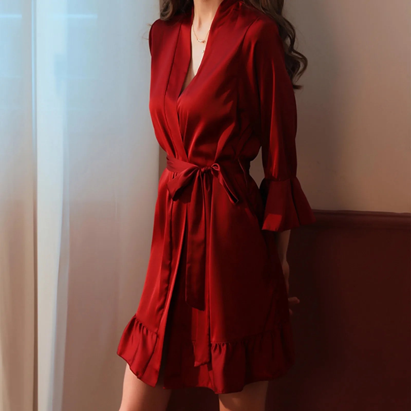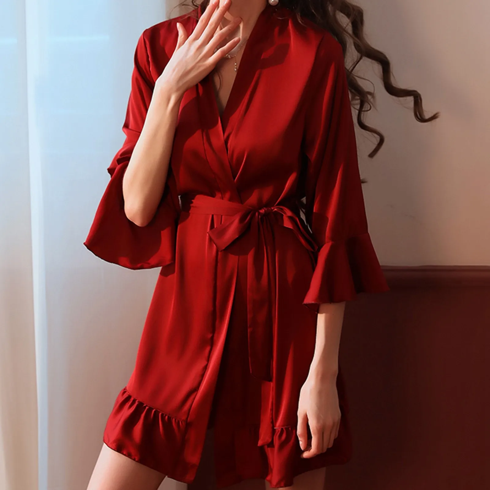 Sexy Lingerie For Women Autumn Winter Seductive Silk Kimono With Ruffled Sleeves Sleepwear