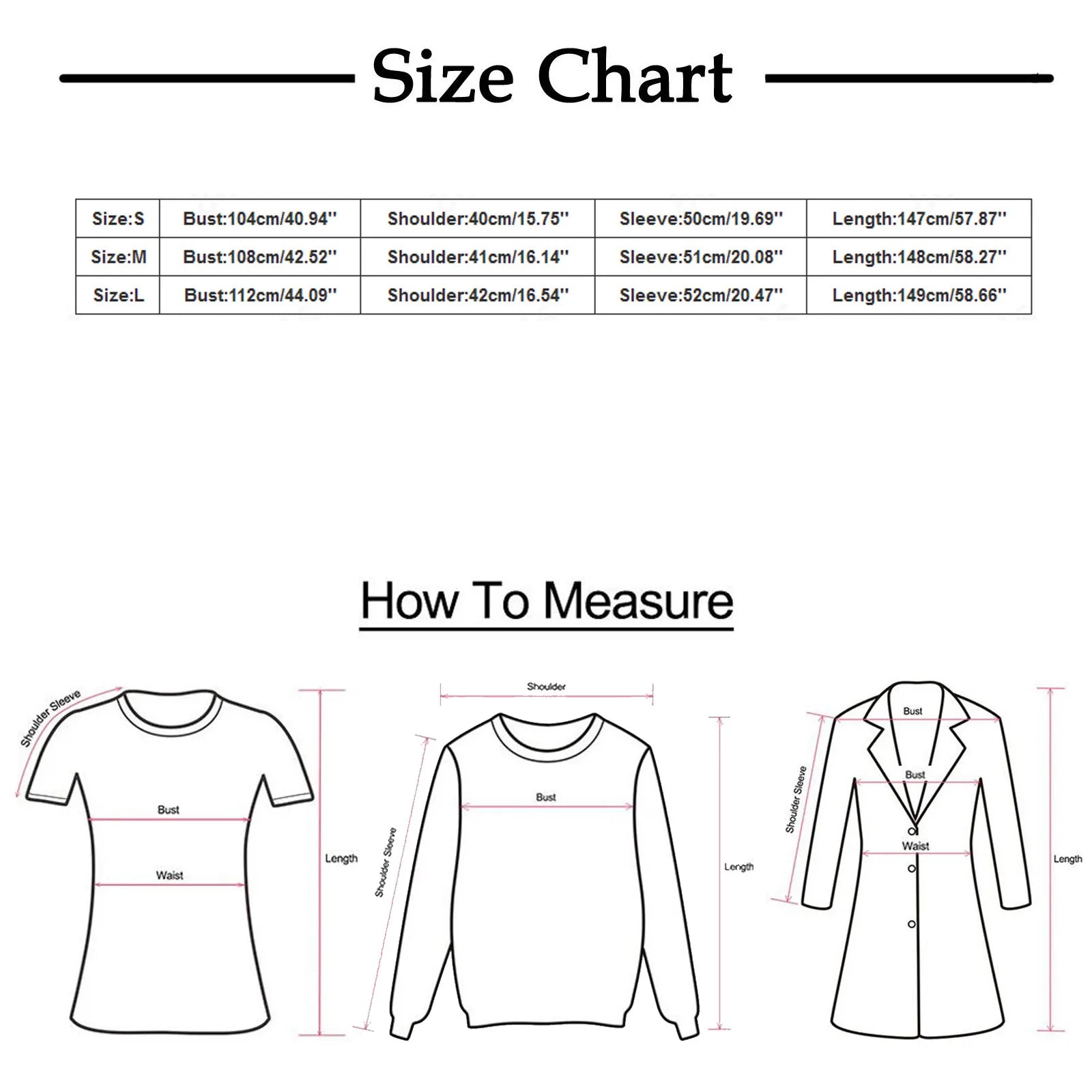 | Size:L | Bust:112cm/44.09'' | Shoulder:42cm/16.54'' | Sleeve:52cm/20.47'' | Length:149cm/58.66'' |
