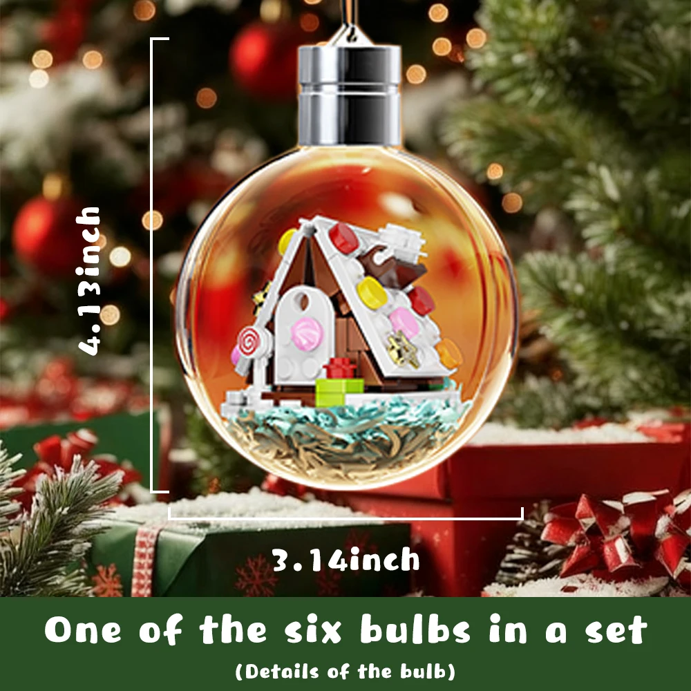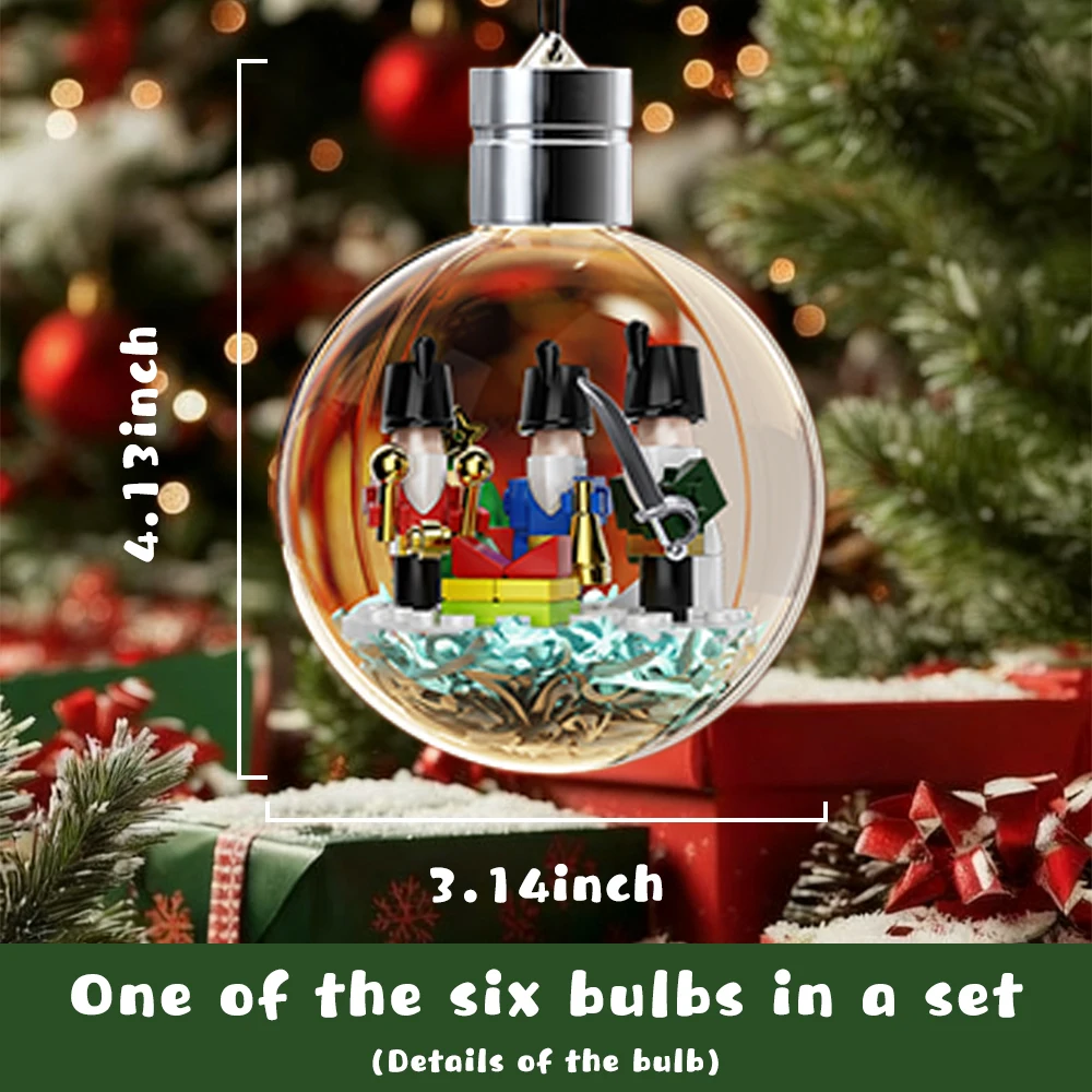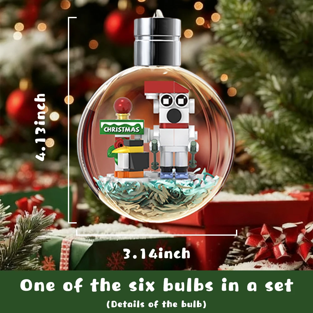 This set includes 6 unique Christmas-themed building bulb ornaments, each featuring distinct designs like Santa, snowmen. It offers abundant options to decorate your Christmas tree or create a charming holiday display.