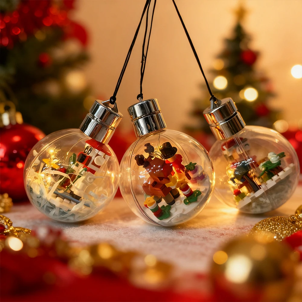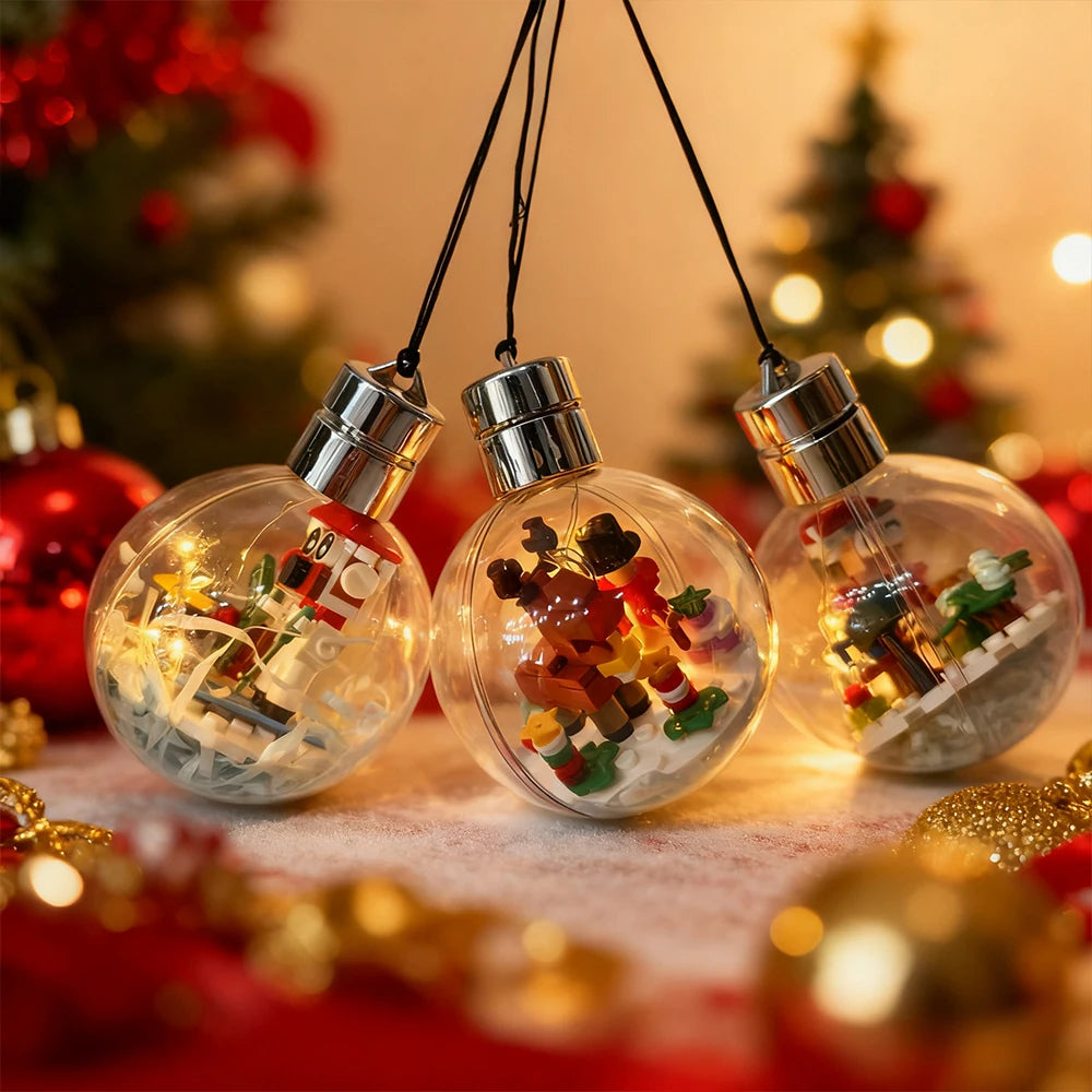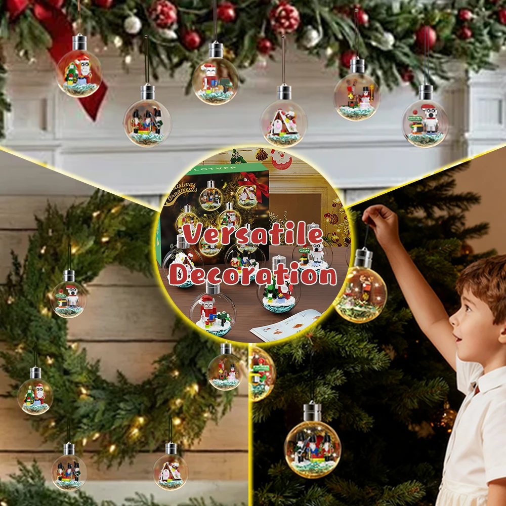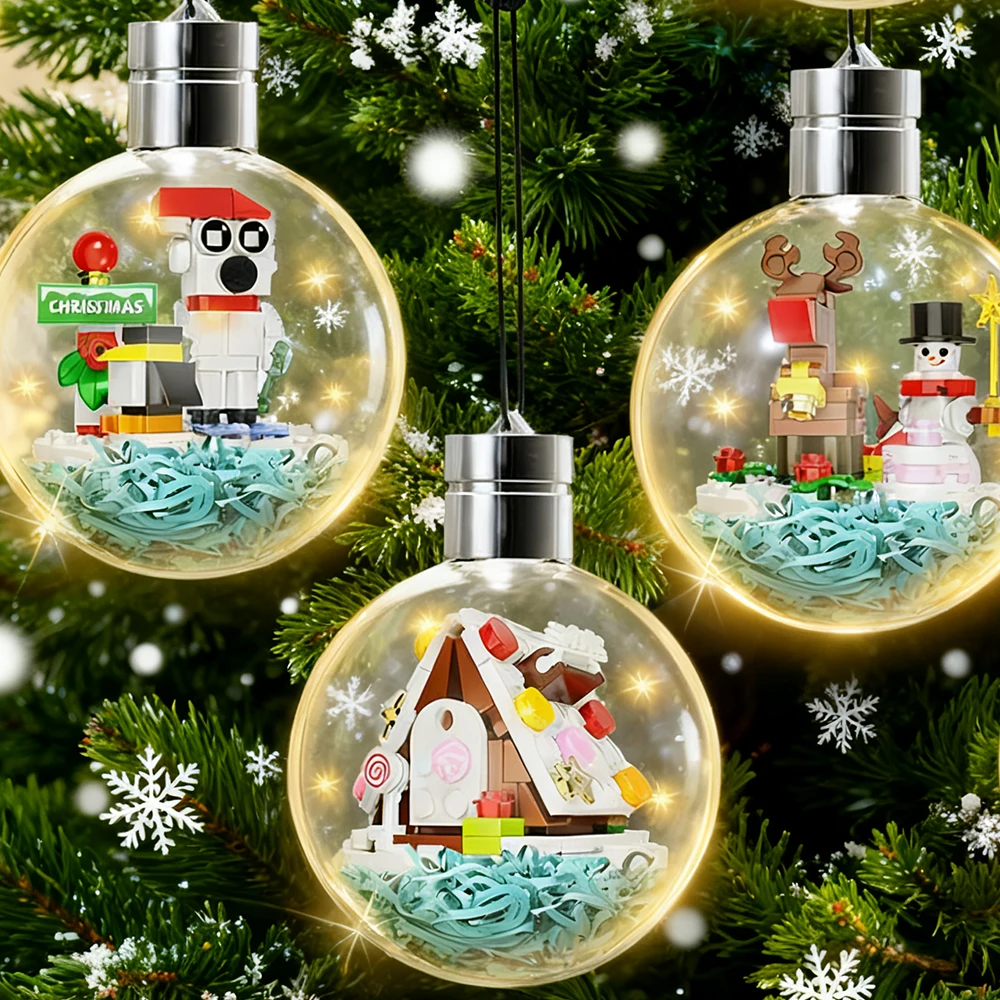 This set includes 6 unique Christmas-themed building bulb ornaments, each featuring distinct designs like Santa, snowmen. It offers abundant options to decorate your Christmas tree or create a charming holiday display.