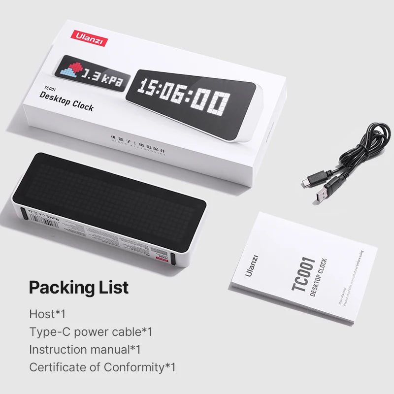 Ulanzi TC001 Smart Pixel Clock Weather Forecast Function Scientific Management of Time Full Color Pixel Display Clock
