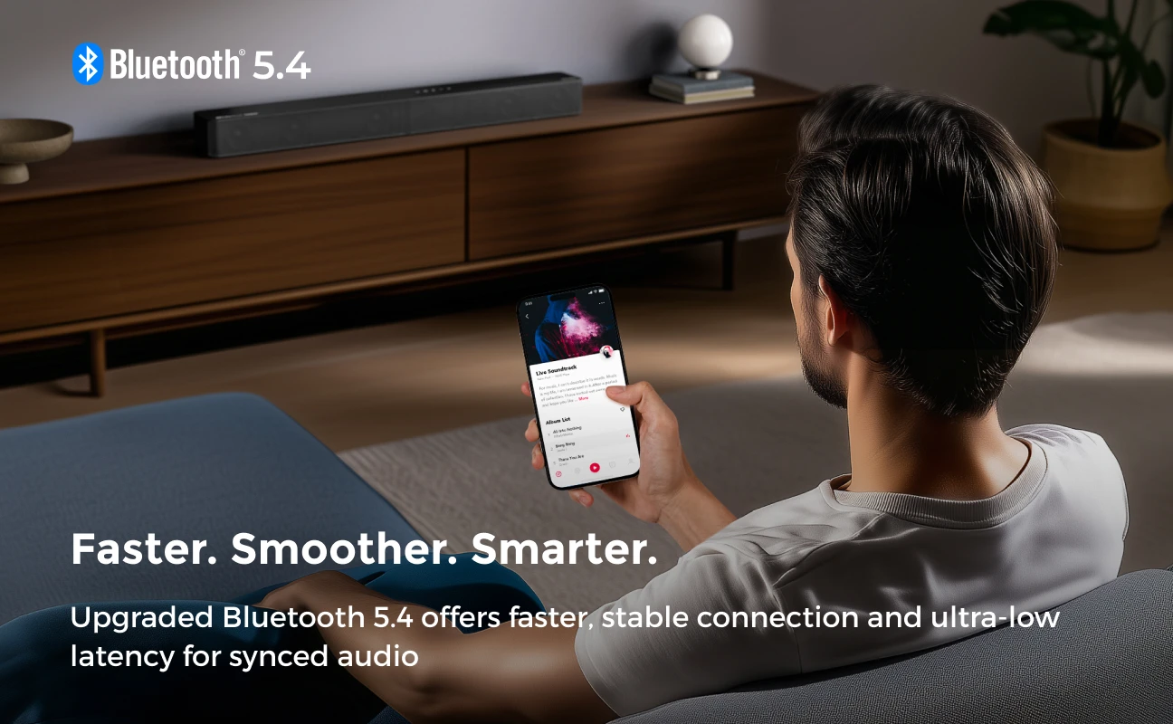 Connectivity: HDMI eARC, Optical, AUX, USB, Bluetooth 5.3