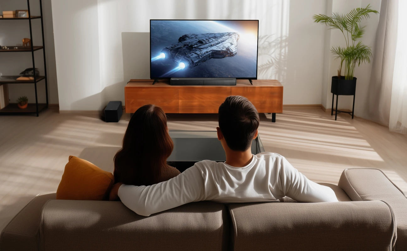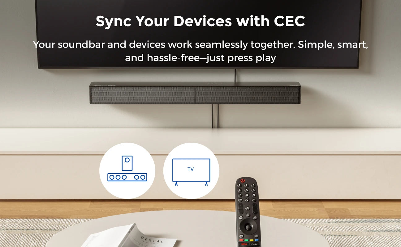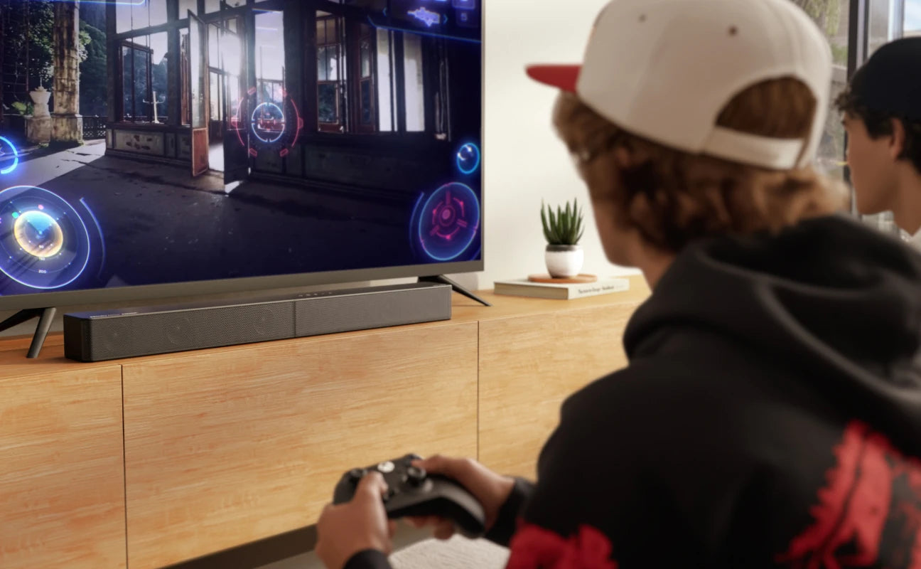 One sleek bar with built-in left and right surround speakers. Enjoy effortless setup and immersive surround sound — all in a compact, space-saving design.