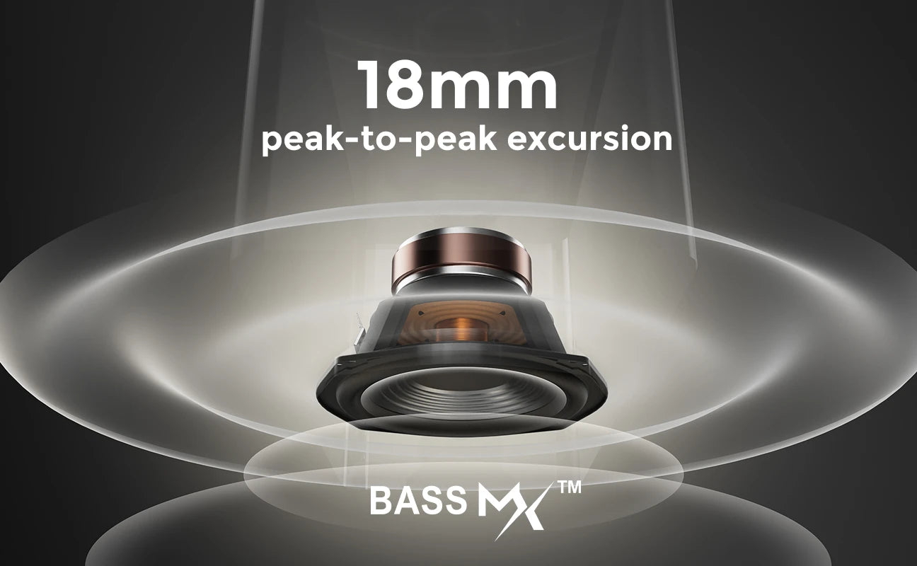 With up to 16mm diaphragm excursion, BassMX™ unleashes deep, high-impact bass with clarity and control.
