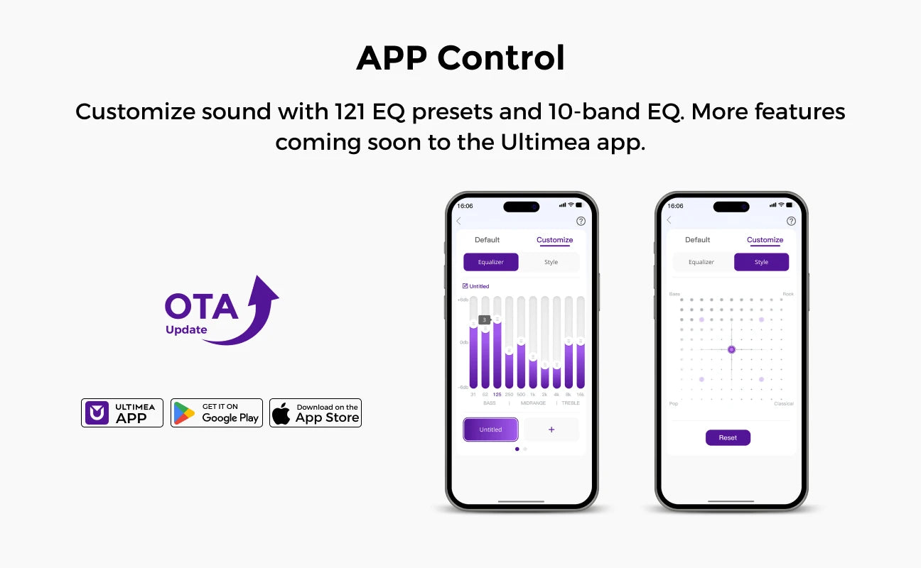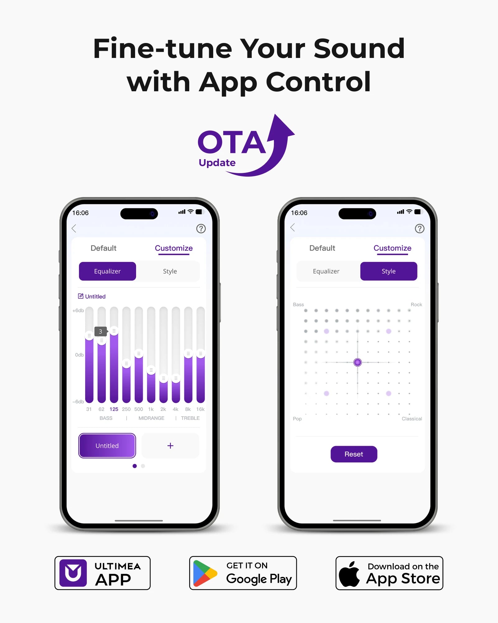 Take full control of your audio with the Ultimea App. Fine-tune every detail right from your phone for a truly personalized listening experience.