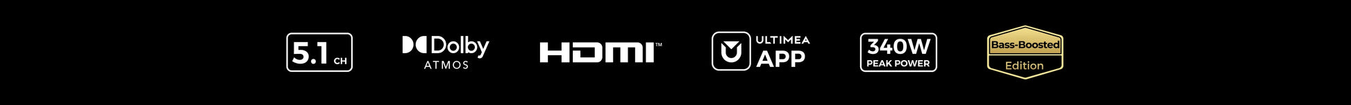 ULTIMEA 340W 5.1CH Surround Sound Bar with Dolby Atmos and Subwoofer, VoiceMX,BassMX, APP Control, Home Theater Soundbar Speaker