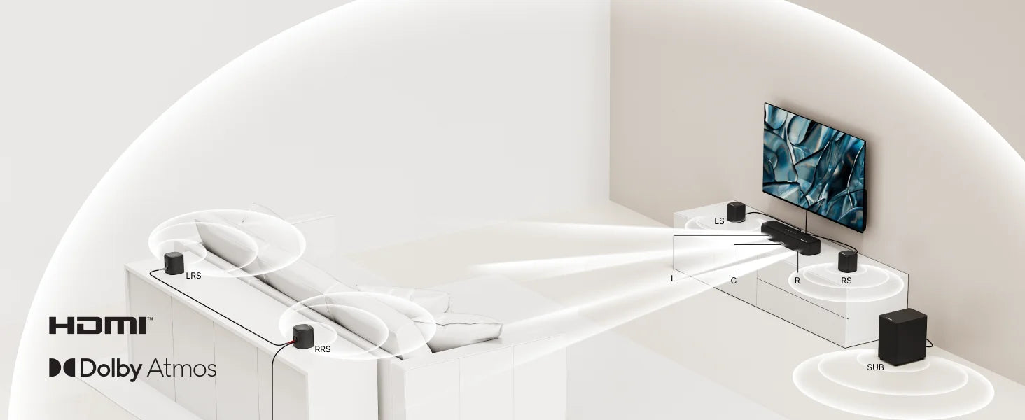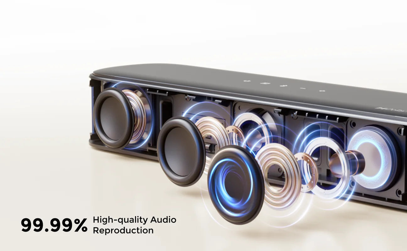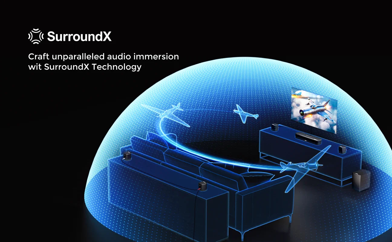 Whether it's Blu-ray DVD playback or streaming media applications such as Netflix and Prime Video built into smart TVs or set-top boxes, as long as the disc or audiovisual content supports Dolby Atmos, it is fully compatible with decoding and playback. Through SurroundX’s advanced audio algorithms, the sound field is optimized based on the audio signals from the left and right main channels, making the rear sound field wider and creating an expansive soundstage. Every component works in harmony to deliver precise, crystal-clear sound—perfect for movies, gaming, and music lovers seeking perfection.