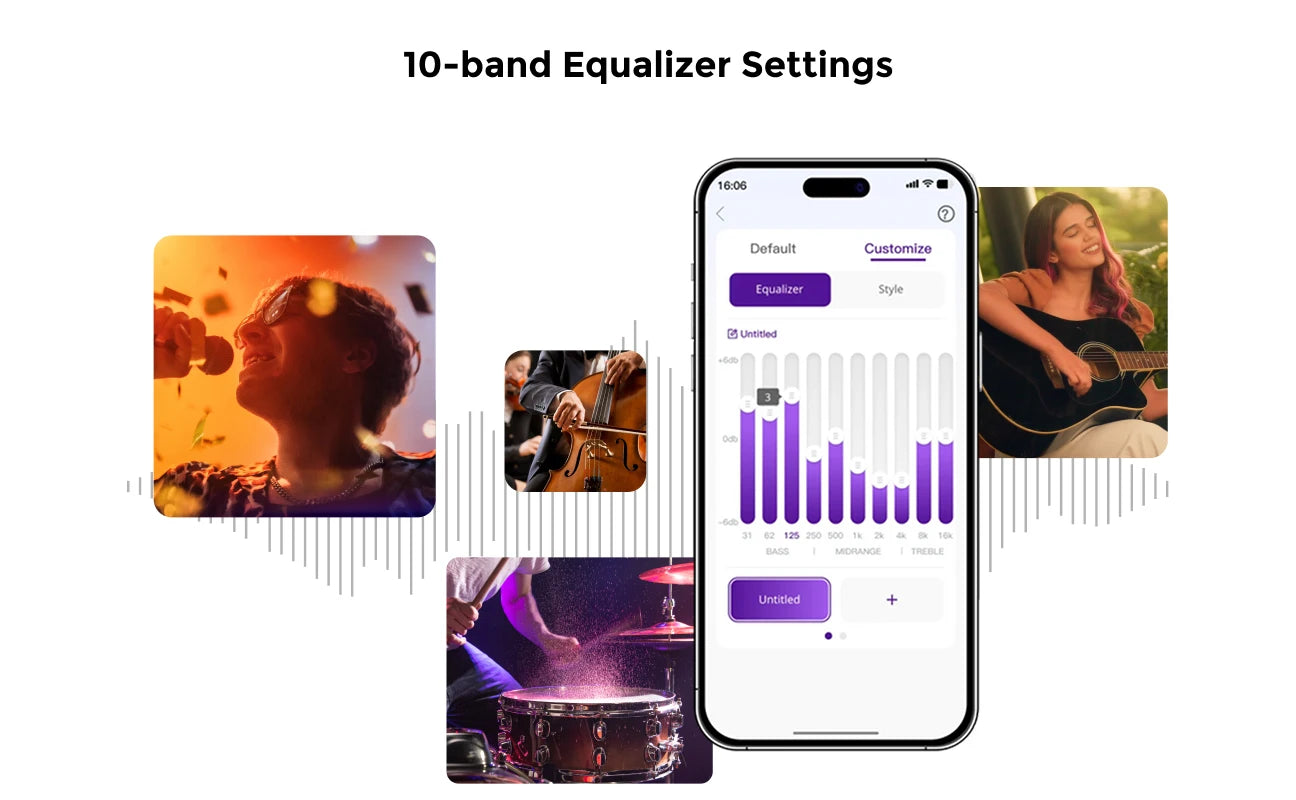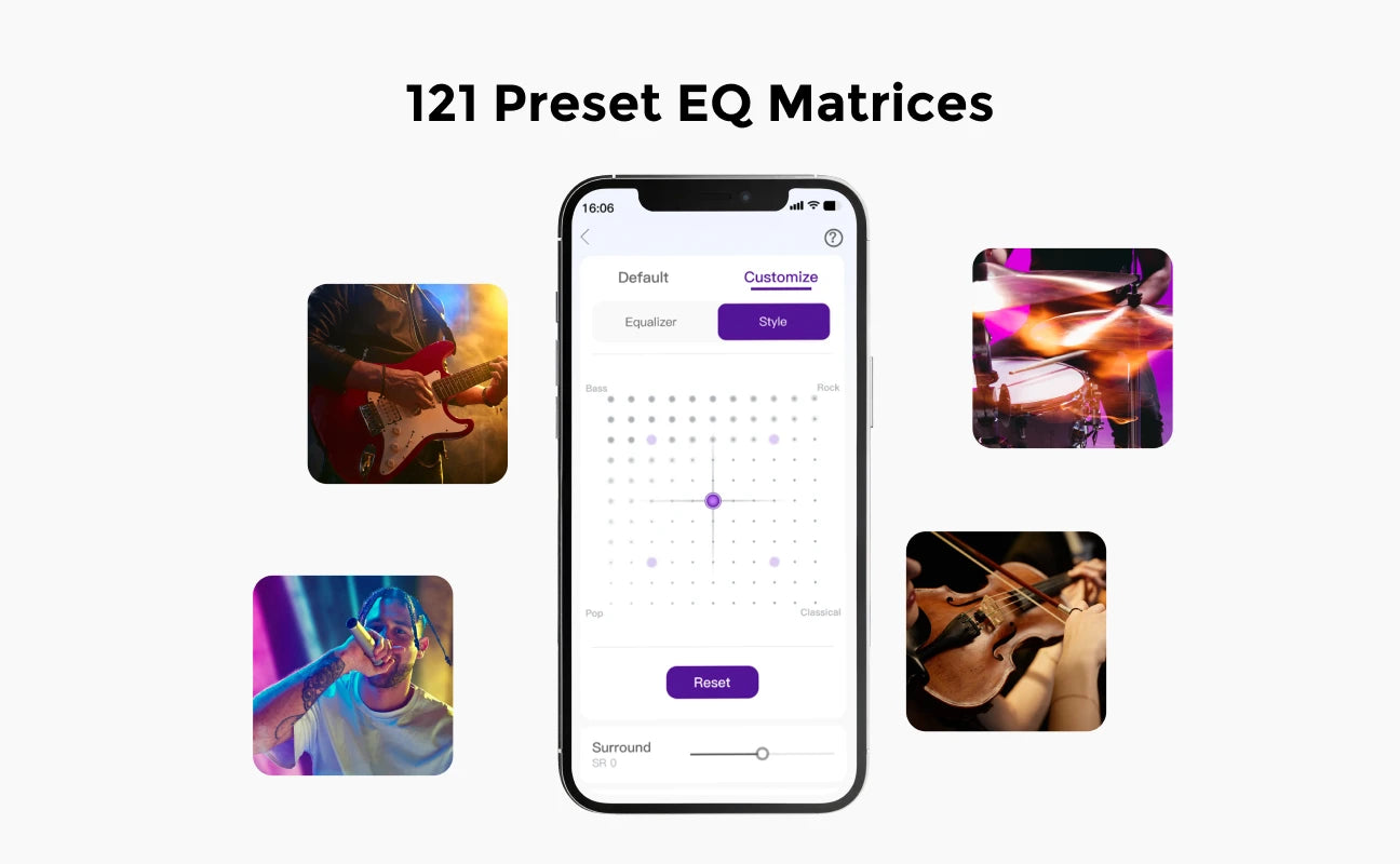 Elevate your audio experience with 6 custom EQ modes: Movie, Music, Voice, Sport, Game and Night, each tuned for optimal performance. Fine-tune your listening even further with the advanced "Customize" feature of the Ultimea app, which allows you to fine tune the perfect sound to your preferences and environment.