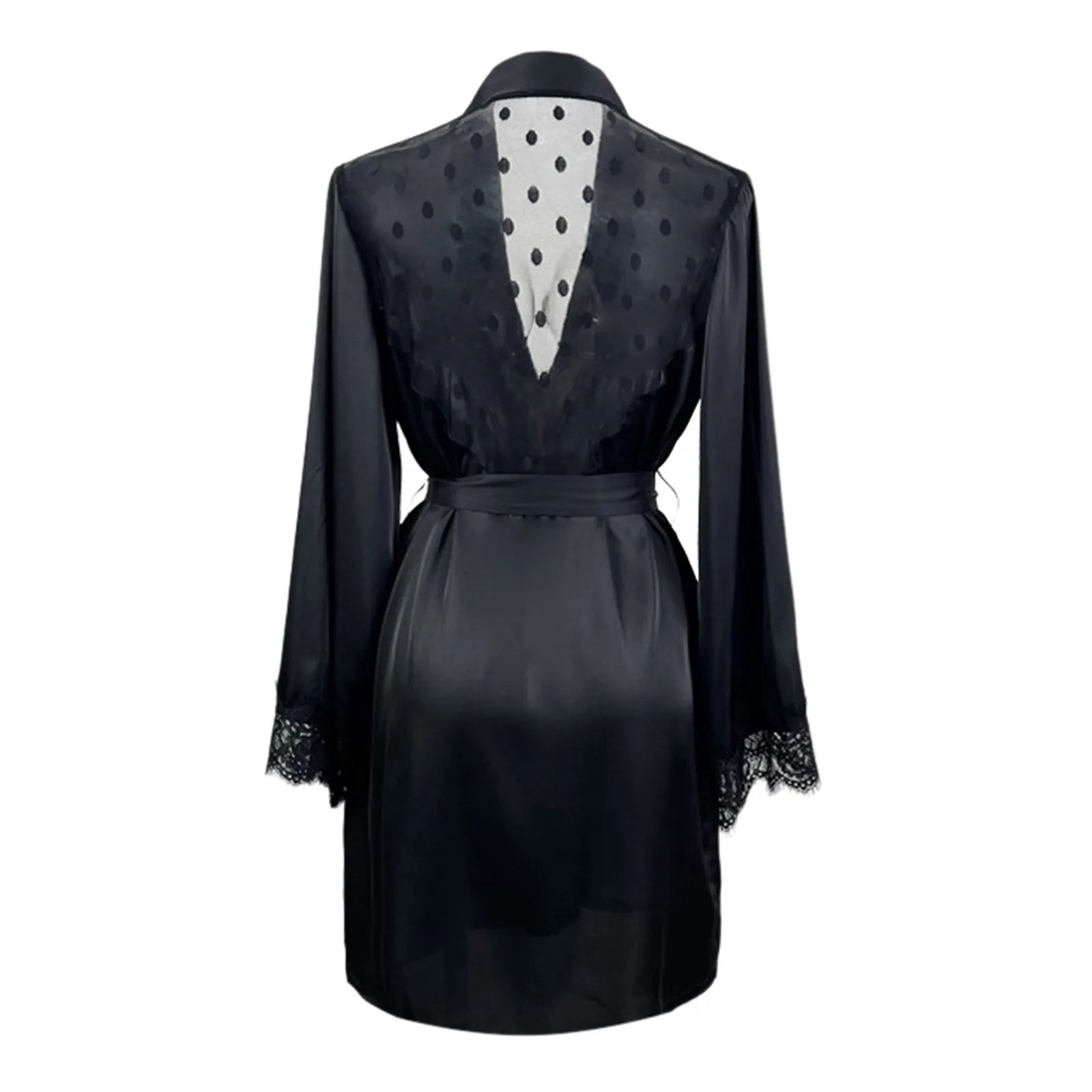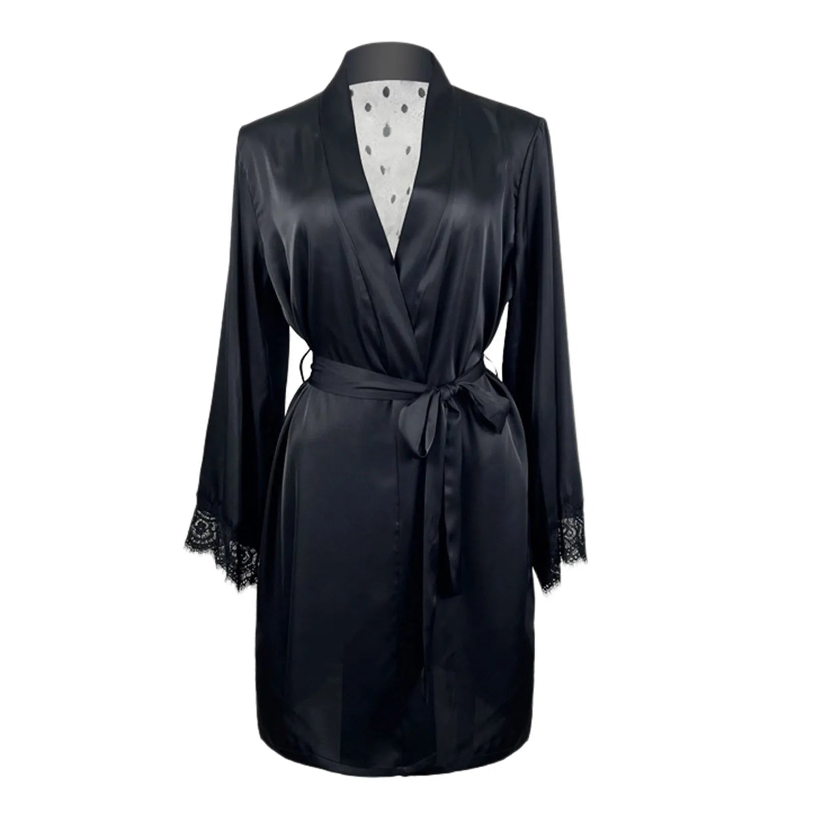 Women's Ice Silk Robe Satin Lace Kimono Robe Solid Bathrobe With Tie Women Night Gowns Mesh Back Hollw Robes Bridesmaid Robes