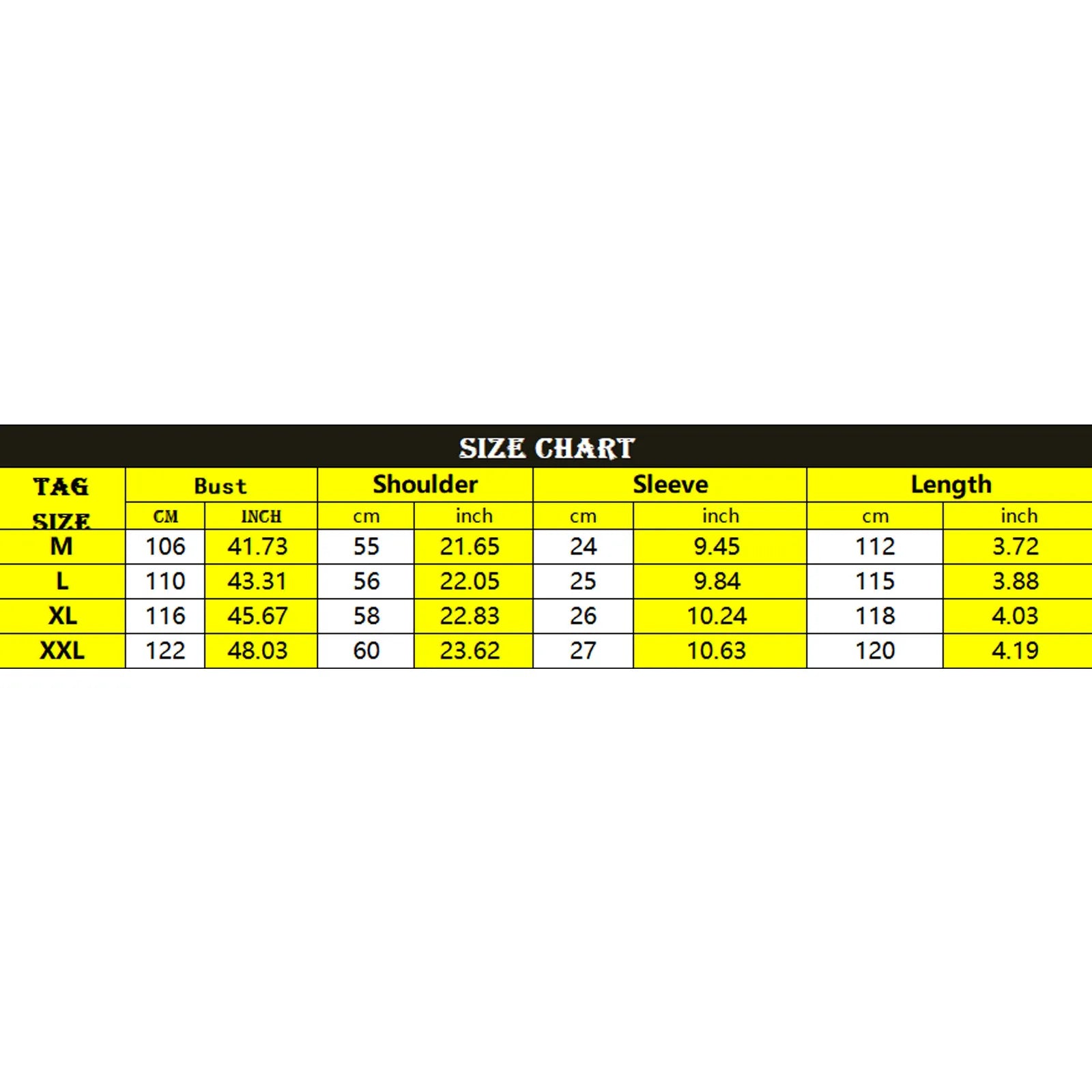 | Size:XXL | Bust:122cm/46.46'' | Shoulder:60cm/22.83'' | Sleeve:27cm/10.63'' | Length:120cm/47.64'' |