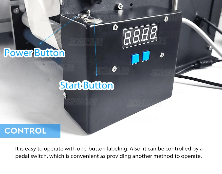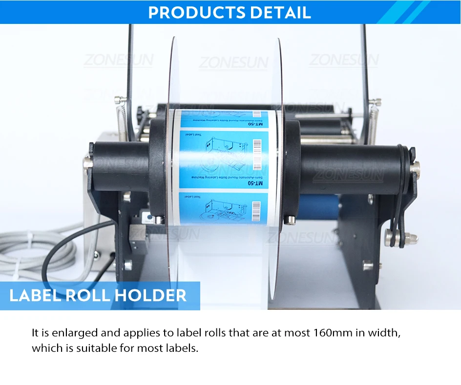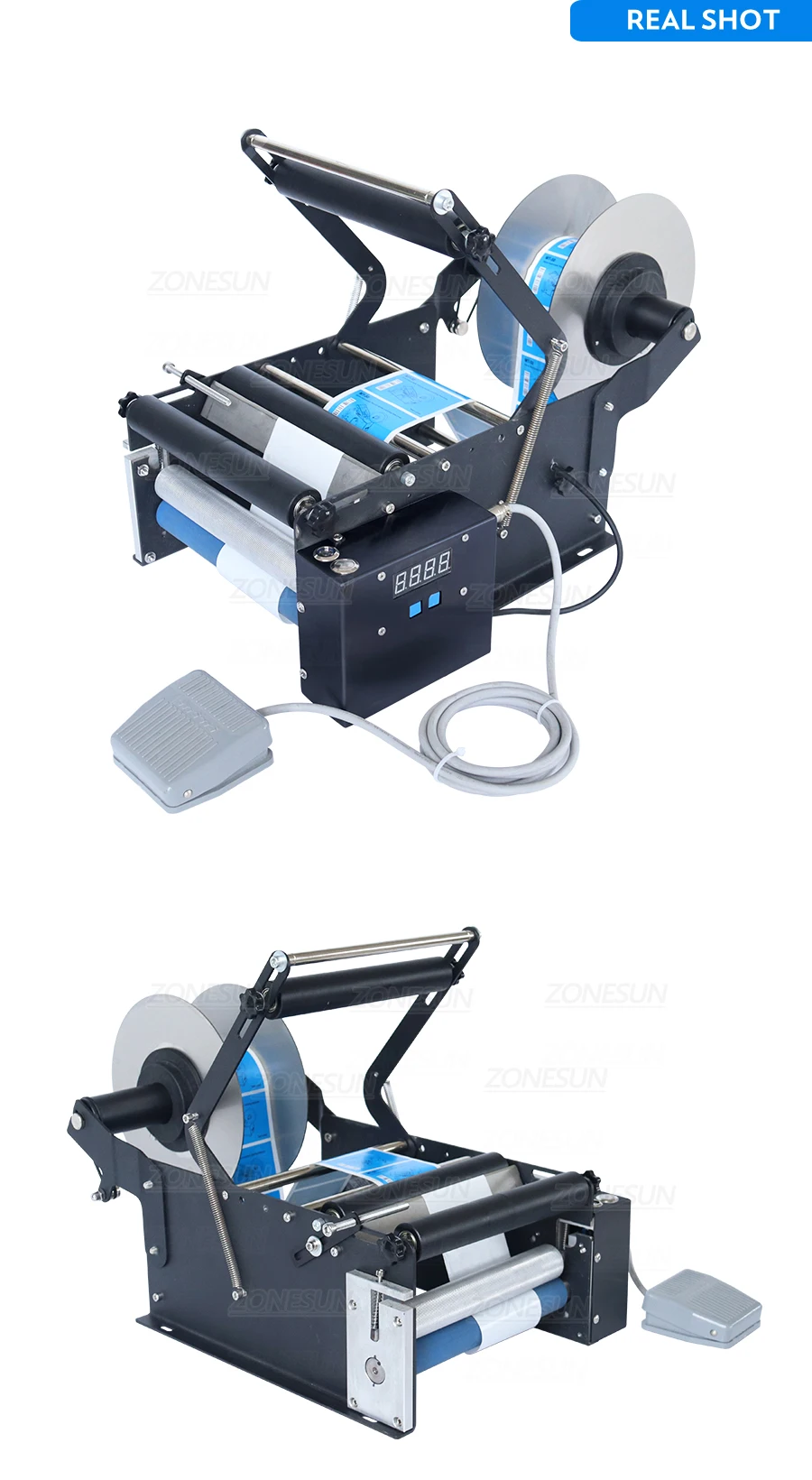 This machine is used to stick labels on round bottles, such as dropper bottles, beverage bottles, etc. Compared with other manual labelers, it is electric and has 2 modes, including one-key operation and pedal mode, which is convenient for users to operate and test the machine. It is an enlarged model and can apply to sticker rolls of 160mm in width.